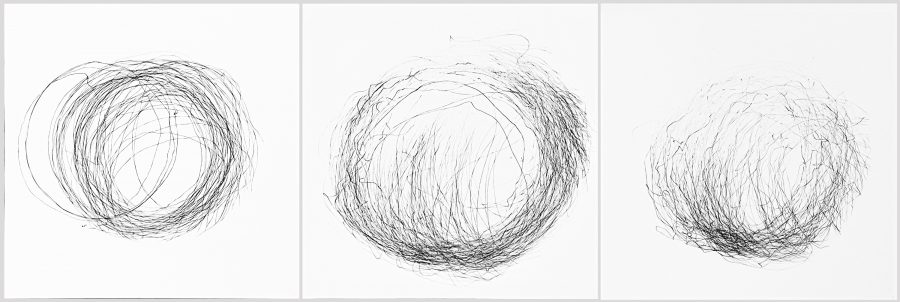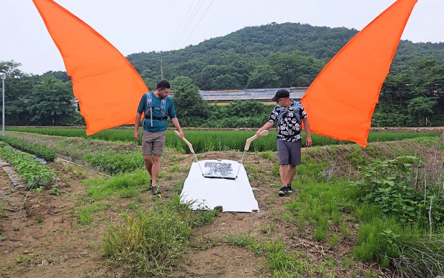 Drawings were also created using the fully autonomous mechanisms first developed in Ottawa. Interestingly, and perhaps not surprisingly, the wind-drawings created in “the land of the morning calm” were of a very different character than those made back home. The wind in Cheorwon County is gentle and changeable. It flows over the border, slowly across the rice fields, and at times just stops – no wind at all. A number of drawings reflect this: a loose tangle of lines that speak to the lankiness of the wind, the flatness of the fields, and the slow pace of rural life. Occasionally, the wind picks up dramatically, perhaps reflecting the ever-looming threat posed by North Korea.